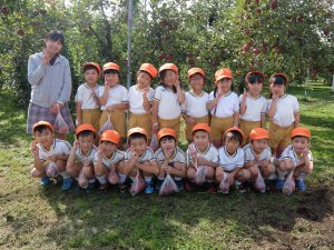 りんごのなり方や採り方を教えて頂いた後に、みんなでりんごを採りました!