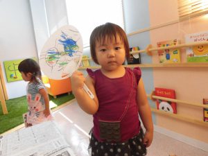 子育て支援活動「うちわ作り」 今日は子育て支援活動で「うちわ作り」を行いました。 うちわの紙に好きな絵を描き、自分だけのうちわを作りました。 みんなとっても上手に描けました☆ 涼しい夏が過ごせそうですね。 次回は夏の思い出製作です。お楽しみに☆