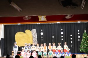 今年は年少組・年中組・年長組がそれぞれオペレッタに挑戦です。登園時から少し緊張気味の子ども達でしたが、舞台にあがると堂々と発表をすることができました。