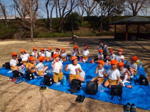 ミニピクニック(年長) 晴天の中、年長組全員で城址公園にピクニックに出掛けてきました。 ブルーシートの上でおやつを食べ、3クラス一緒に玉入れをしたり、鬼ごっこをしたりと楽しい時間を過ごすことができました。 卒園まで残り4日となりました。残り僅かの幼稚園生活、たくさんのお友だちと仲良く素敵な思い出を作っていきましょう。