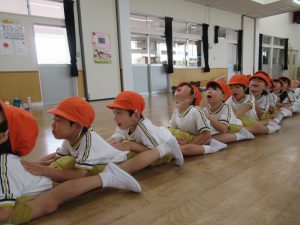 体育教室(年長) 今日の体育教室は、先月に引き続き組体操の練習を行いました。 1人や2人での技から、クラスのみんなで力を合わせて作るものまでできるようになりました! たくさんの技がありますが、みなさんの前でかっこよく披露できるよう頑張って覚えています! せひ楽しみにしていてください☆