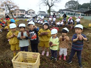 みんなさつまいもが獲れると嬉しそうに『見てみて。大きいのが獲れたよ』と見せてくれました。