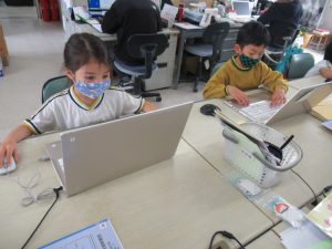 パソコン教室(年長) 今日は、最後のパソコン教室がありました。 マウスを使ってクリックやドラッグをし、楽しく学ぶことができました☆ 約1年間を通して、沢山の事を学び、パソコンに向かう姿は真剣そのもの。 また、講師の青木先生から小学校で使える名前シールを頂きました♪ 本日お持ち帰りしますので、ぜひ使ってみてください。 青木先生、1年間ありがとうございました。