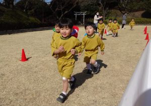 マラソン大会の練習(年少) 今日はマラソン大会の練習をしました! 年少組は、城址公園を2周走ります。 怪我をしないように準備体操もしっかり行い、 位置についてよーいドン! 最後まで諦めずに一生懸命走ることができました☆ 終わった後も「疲れたけど、たのしかった!」と笑顔で話してくれました♪ 本番もかっこいい姿を見せられるように引き続き練習を行っていきたいと思います!
