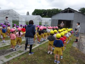 いちご狩り(年中) 今日は年中組でいちご狩りに行ってきました。 いちご農園の方から、いちごの獲り方などを教えていただき、いちご狩りスタート! 大きくて真っ赤ないちごをたくさん見つけ、子ども達も大喜び♪ とても美味しそうに食べていました! 楽しい時間を過ごせて良かったね☆