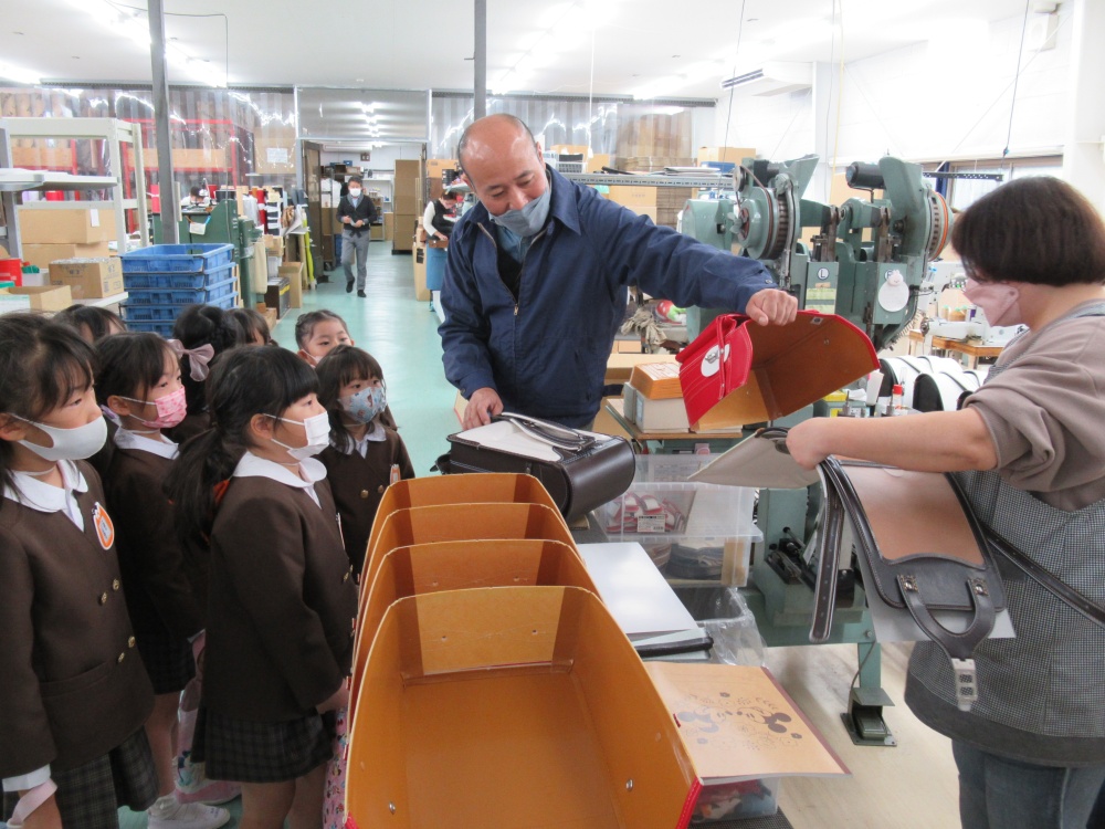 大峽製鞄工場見学(年長) 10月25日にゆき組、11月1日につき組、11月8日にほし組が 大峽製鞄工場に見学に行ってきました。 工場見学では、ランドセルを作っているところを見せて頂き、 裁断したり縫っているところを実際に見て、子ども達も興味津々でした♪ キーホルダー制作では、革でできたキーホルダーにシールでデコレーションし、 オリジナルのキーホルダーを作成することが出来ました。 見学させて頂きましてありがとうございました!