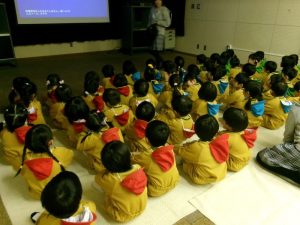 今日は年少組のお楽しみ会で上三川町立図書館に出掛けて映画を観に行きました。