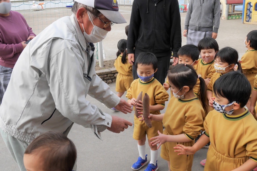 さつまいもをいただきました☆ 寒さが一段と厳しくなってきましたが、皆様いかがお過ごしでしょうか。 さて、今日は上三川町の三ツ谷にある「408.farm」の方々が子ども達にさつまいもを持ってきてくださいました!! たくさんのさつまいもに子ども達は大喜び♪ ご家庭でぜひお召し上がりください☆