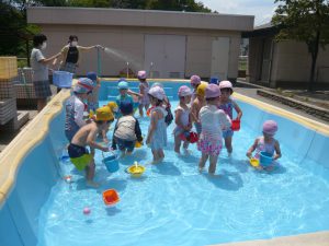 英語教室(年長) 今日は英語教室がありました。 今回は植物が育つために必要な「水・土・日光」のことを英語で教えてもらいました。 ゲームではリズムに合わせて英語を話し、楽しく学ぶことが出来ました! 1学期の年長組の 英語教室は今日で最後になります。 2学期の英語教室もお楽しみに…☆