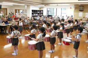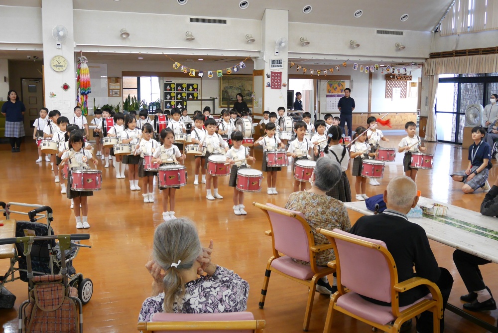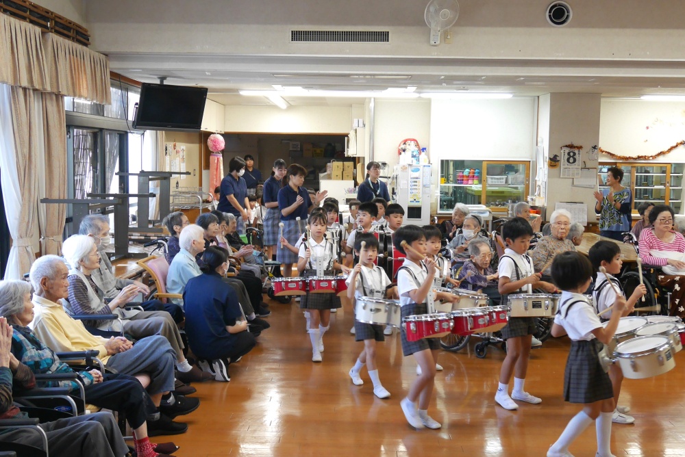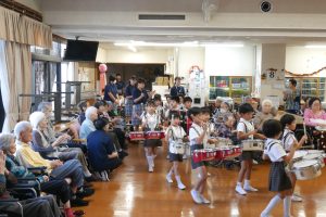 最後にドラムマーチで施設内を回り、お部屋にいる利用者様にも