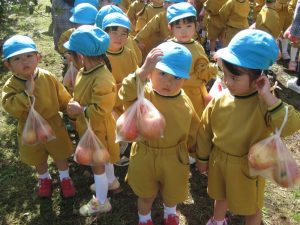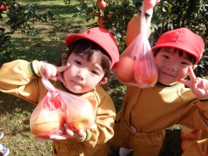 子ども達は自分で収穫したりんごを笑顔で見せ合う姿が見られました。