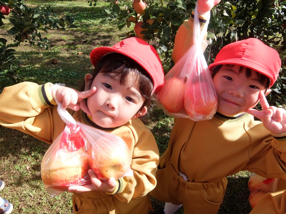 今日は年少組でりんご狩りに行ってきました☆