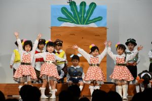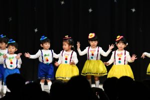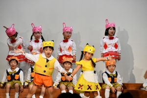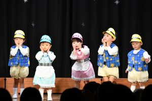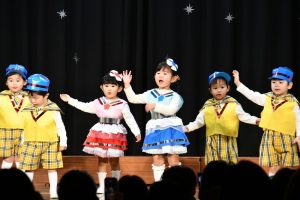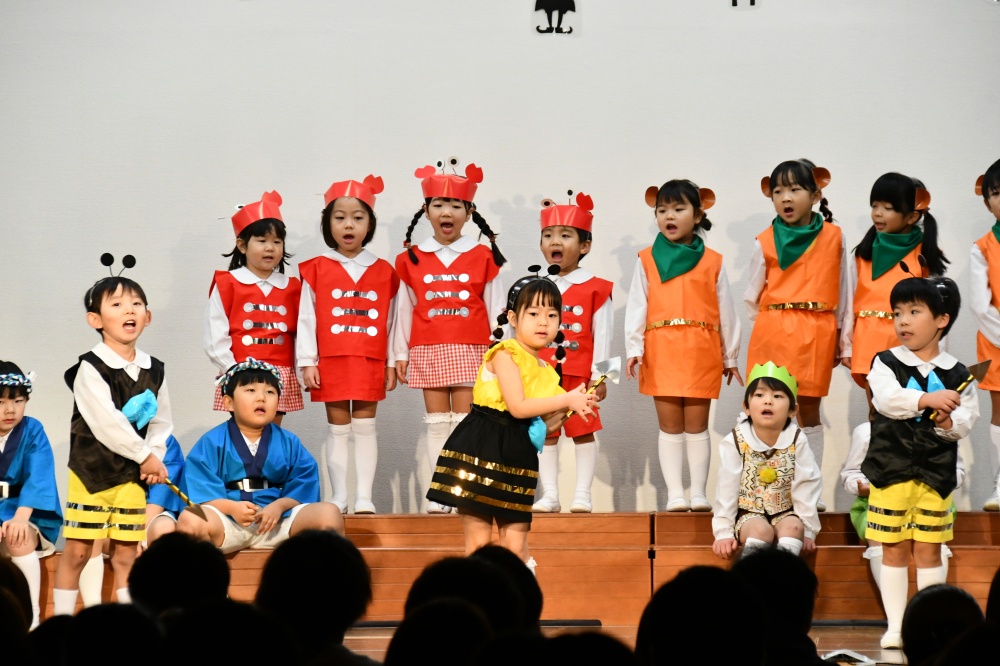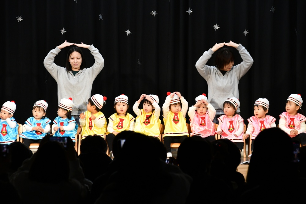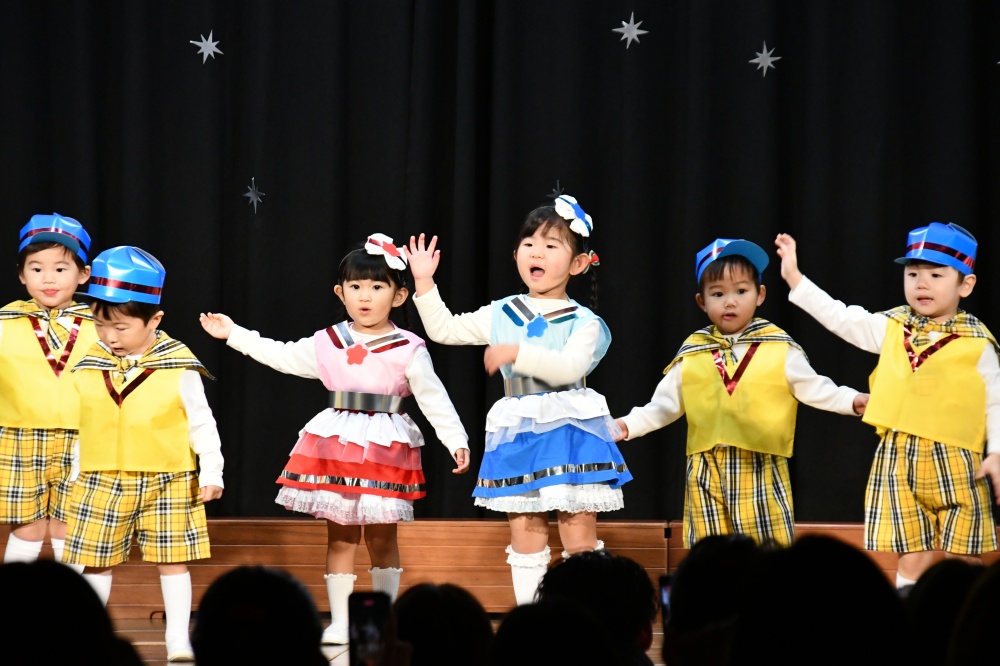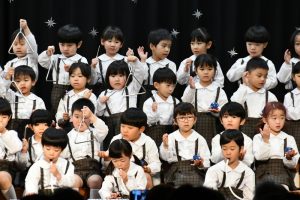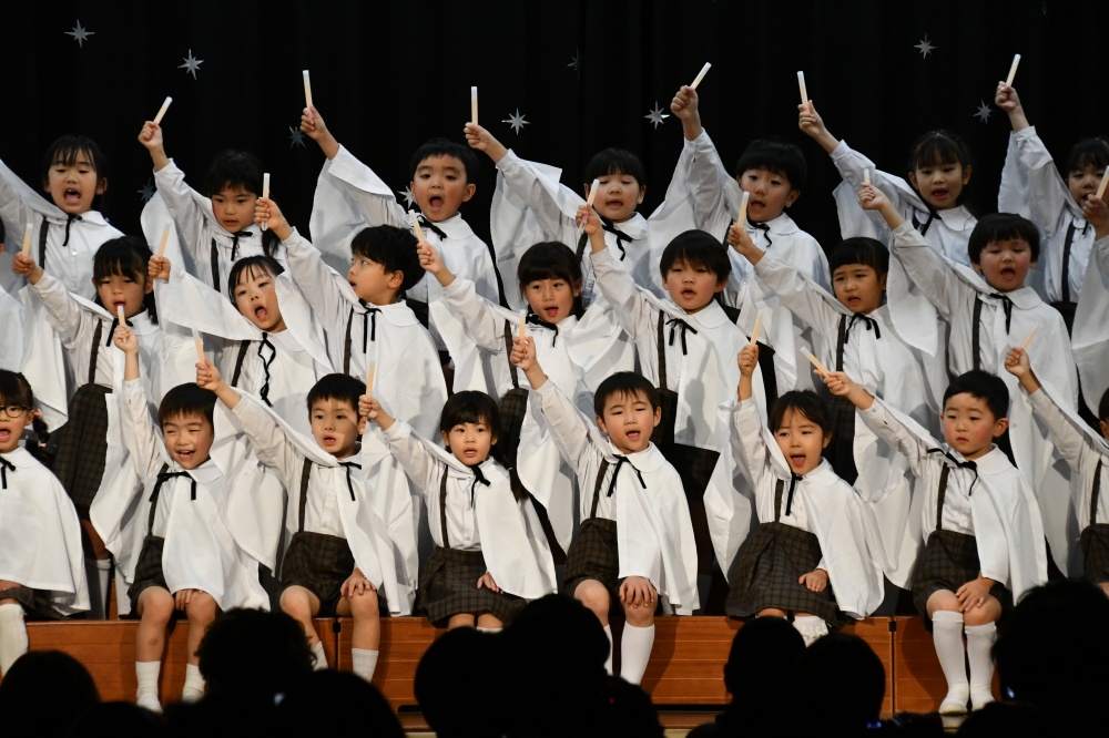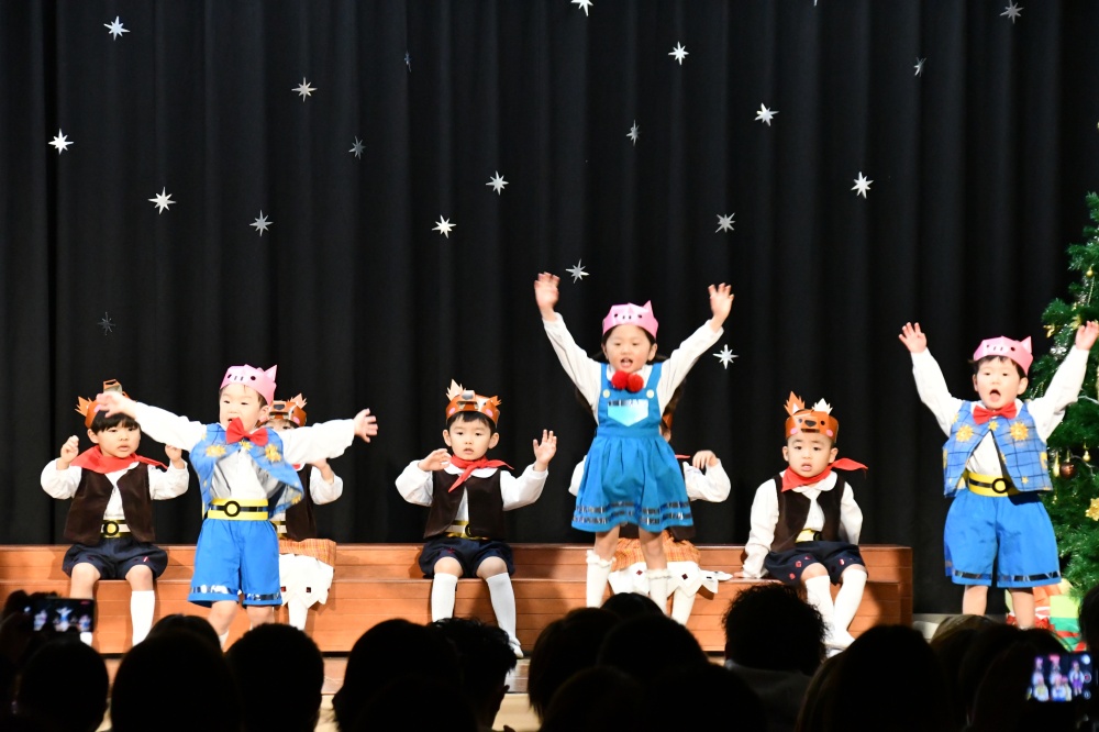 クリスマス学習発表会 12月5日(金)にクリスマス学習発表会が行われました。 各クラスで毎日楽しみながら歌や踊りを頑張っていたり、オペレッタやセリフを覚えたりと、たくさん練習をしてきました。当日は緊張した様子も見られましたが、おうちの方々の前でかっこよく発表できたくさんの拍手をもらえたことで、子ども達の表情も輝き自信に満ち溢れていたように思います。 お忙しい中お越しいただきまして、ありがとうございました。 ※その他の写真は、後日幼稚園HPに『写真館』にアップさせていただきます。 ★乳児組★ ★ももぐみ★ ★年少組★ ★年中組★ ★年長組★