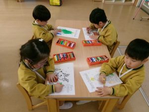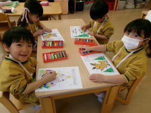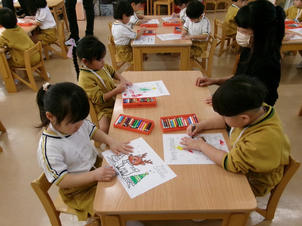 その後は、クリスマスの塗り絵を行いました。