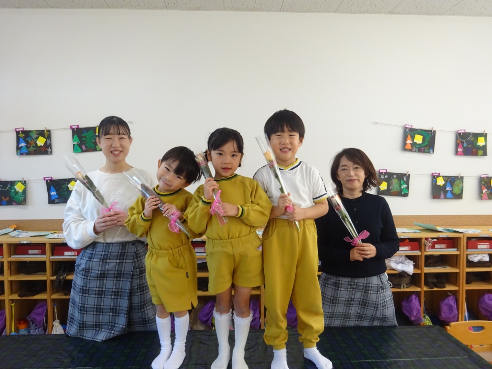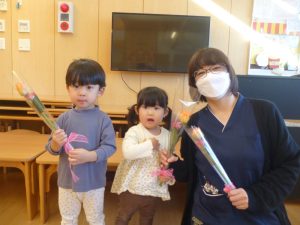 誕生会(12月) 今日は12月生まれのお友達の誕生会を行いました! まず初めにクラスとお名前、何歳になったのかをみんなの前で上手に発表することが出来ました! 次はお花と歌のプレゼントをもらい、嬉しそうにしている姿が見られました。 その後は各お部屋で出し物を見て、楽しい時間を過ごすことが出来ました☆ 12月生まれのお友達、お誕生日おめでとうございます♪