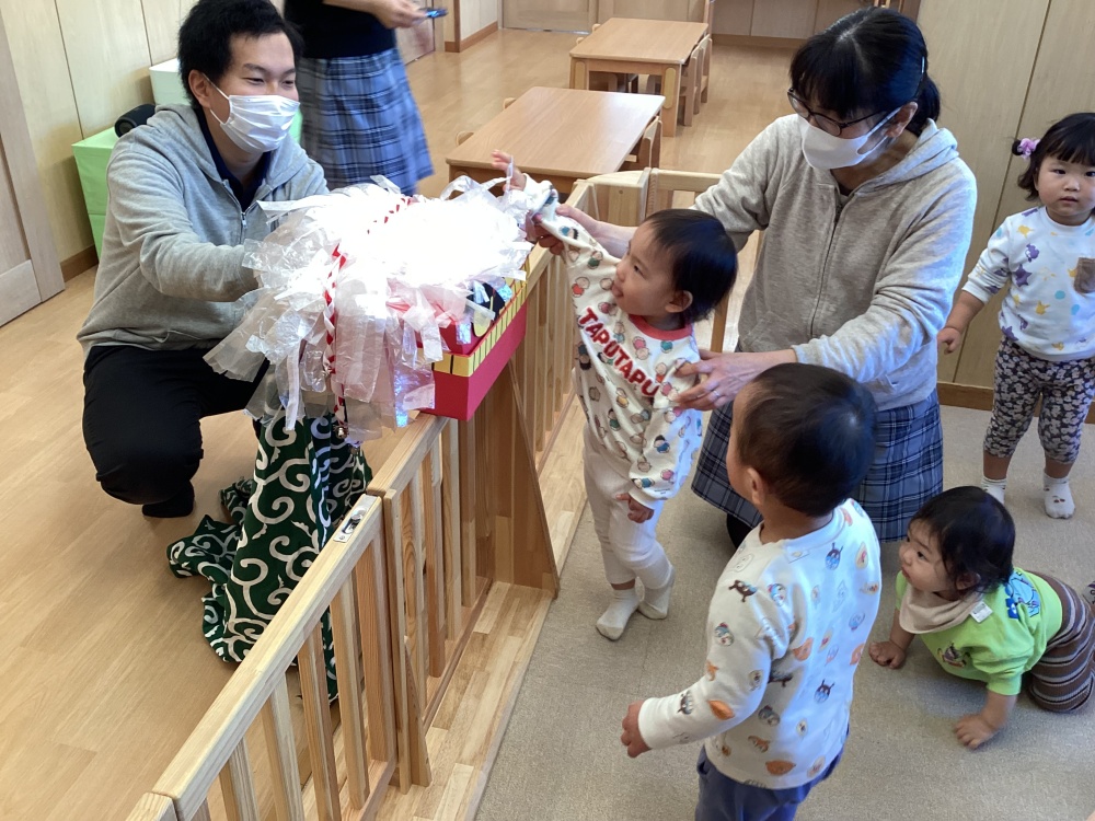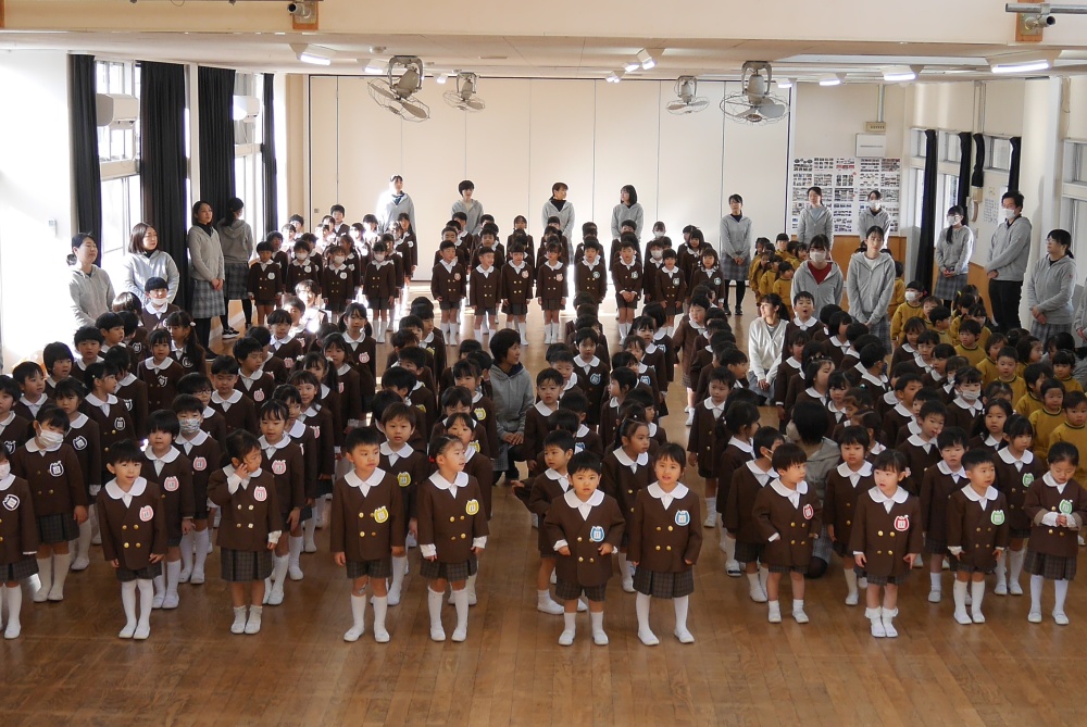 3学期 始業式 新年あけましておめでとうございます。 お休み中は、いかがお過ごしでしたか? 年明けの初登園、子ども達の元気な「おはよう!」の声が聞かれ、冬休みの思い出などをたくさん教えてくれました。 1年で一番短い3学期ですが、まだまだたくさん行事もあります。 体調管理に気を付けながら、元気いっぱい過ごして行きたいと思います。 本年もどうぞよろしくお願いいたします。