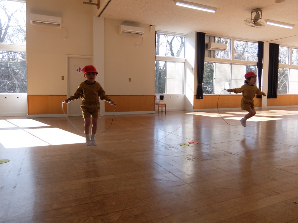 今日は年少組のなわとび大会を行いました。