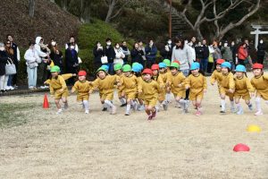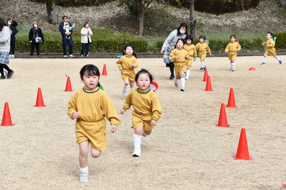 マラソン大会(年少) 今日は年少組のマラソン大会を行いました。 子どもたちは準備体操を行ったあと、スタートの合図に合わせて元気いっぱいスタートすることができました。 緊張している姿がありましたが、ゴールまで精一杯走り切った年少組さんがかっこよかったです。 保護者の皆様、たくさんの応援と拍手をありがとうございました。 ご家庭でも子どもたちの頑張りをたくさん褒めてあげてください☆ミ
