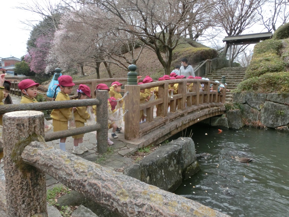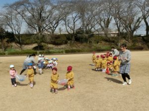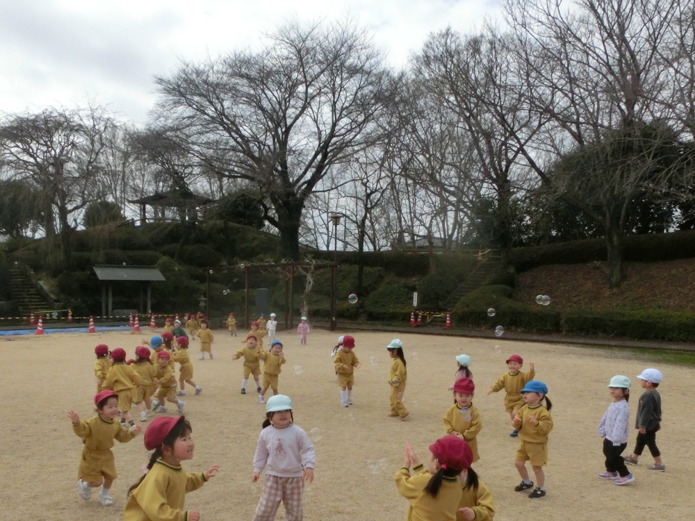 お楽しみ会(もも組) 今日は、お楽しみ会だったので、城址公園へ行き、沢山身体を動かし遊んできました。たいよう組.しらさぎセントラル保育園の友達と一緒に、しっぽとりやボール遊びリレー、しゃぼん玉や鯉に餌やりをしました。 みんなで遊ぶことができて、楽しい思い出がまた一つ増えました。また一緒に遊びましょうね。 もも組での活動も残りわずかとなりました。 一日一日を大切に楽しく過ごしていきたいと思います。