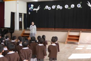 修了式 今日は修了式を行いました。 子ども達は園長先生のお話をよく聞き、4月からクラスが代わり、一つ上の学年に上がる話を聞き、ワクワクしていました。 歌「園歌」「クラリネットをこわしちゃった」春休みを楽しく過ごせるように、「赤青黄色」の歌を歌いました。 4月から元気に幼稚園に来るのを楽しみにしてます☆彡 修了式の前に野沢木工さんと写真を撮りました。 インスタグラムにも写真が載ってるのでぜひご覧ください。