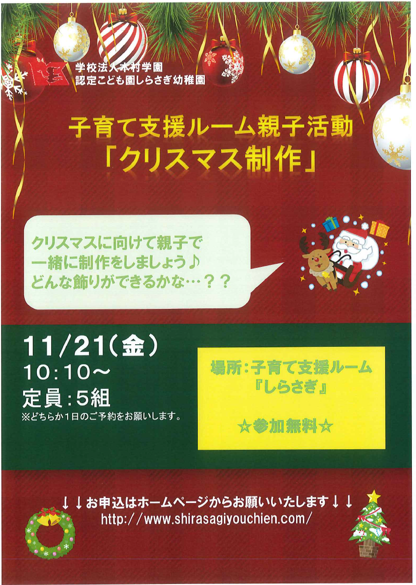 【子育て支援ルーム親子活動】~クリスマス制作~参加者募集!