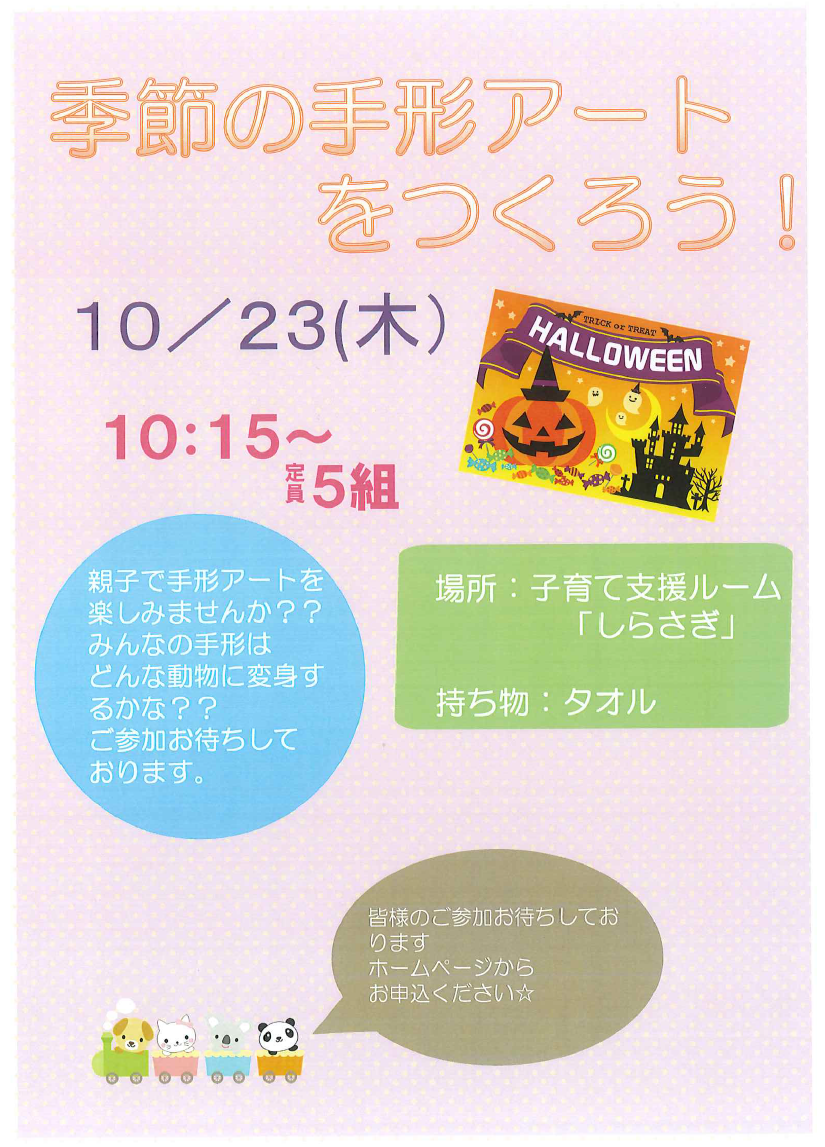 【子育て支援ルーム親子活動】~季節の手形アートをつくろう!~参加者募集!