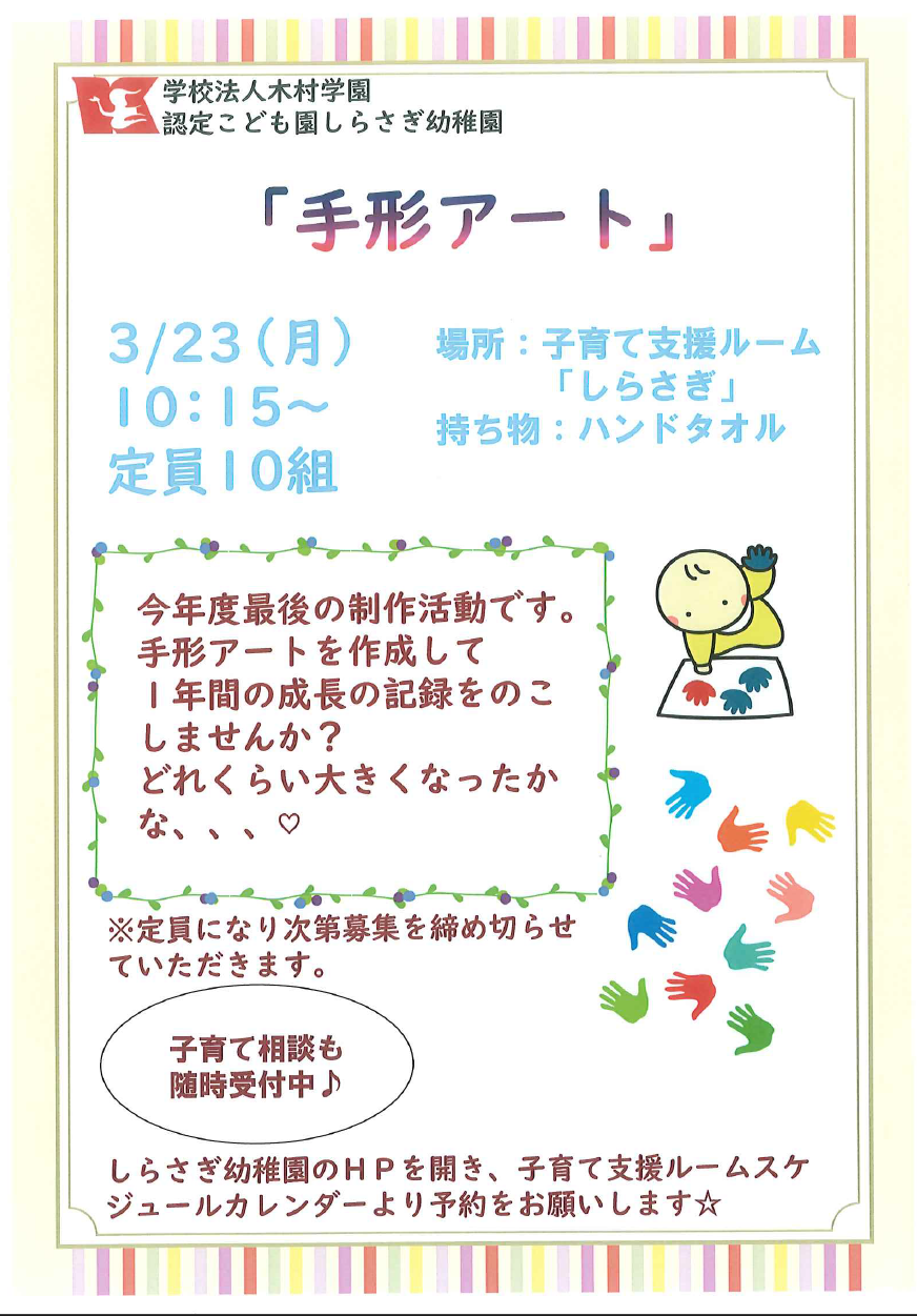【子育て支援ルーム親子活動】~手形アート~参加者募集!