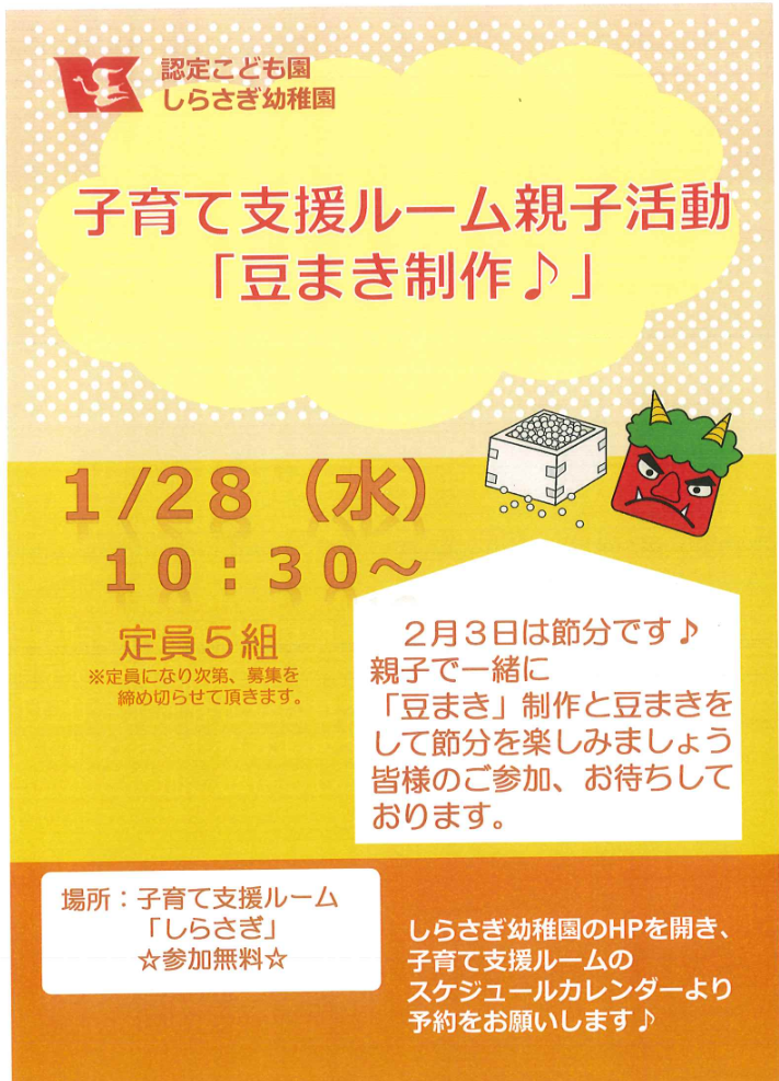 【子育て支援ルーム親子活動】~豆まき制作♪~参加者募集!