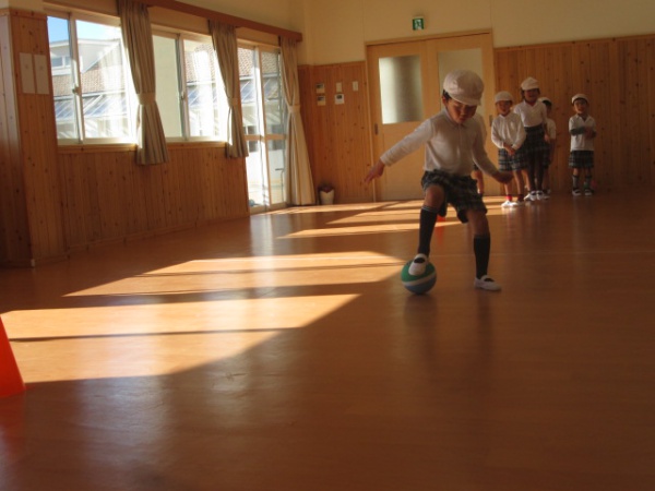 ボール遊びでは、サッカーのドリブルなどにも挑戦しています。