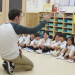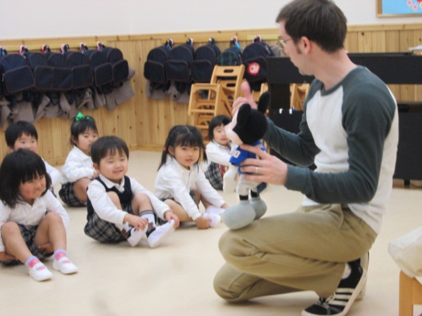 幼児組に進級して、初めて英語教室に参加するさくら組では、