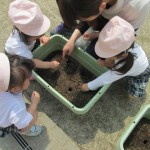 たんぽぽ組やさくら組はみんなでプランターにラデッシュやお花の種をまきました。