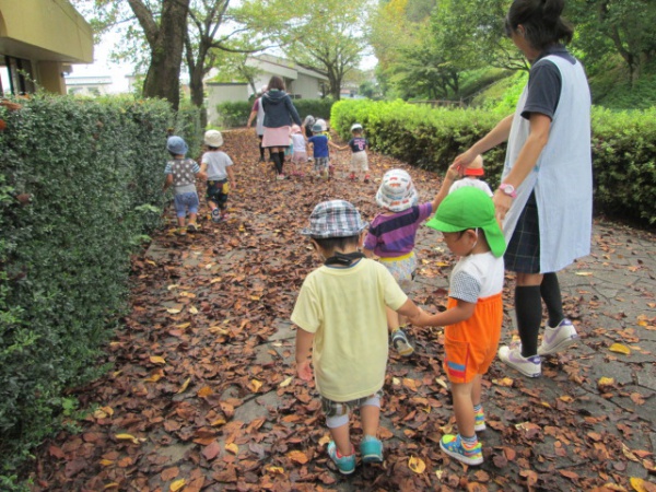 公園では、少し気の早い落ち葉の絨毯の道を通り、