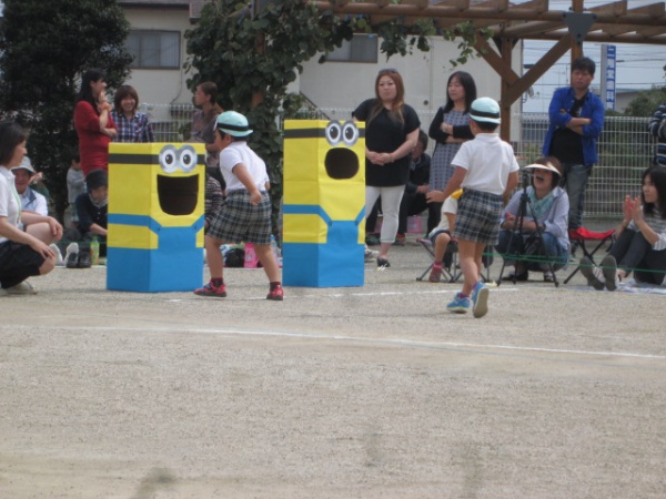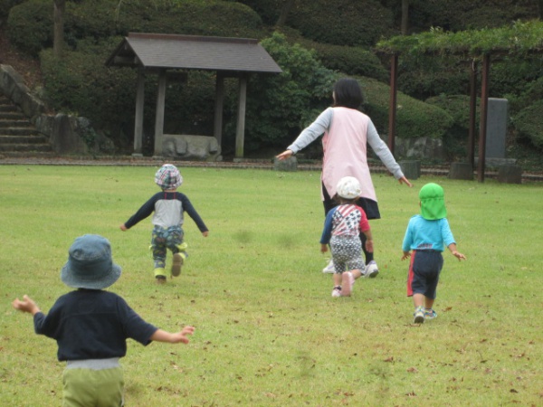 一方、保育園に残った幼児組は園庭で体育教室を行っていました。
