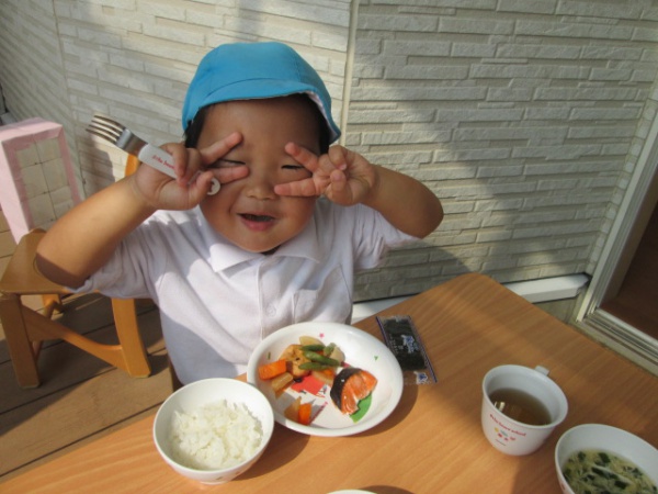 さくら組のおともだちはテラスでランチを楽しんでいました。